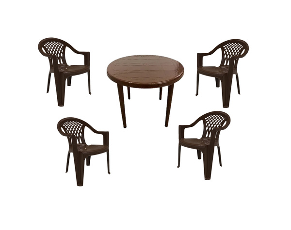 Набор садовой мебели пластиковый коричневый стол круглый 90см. на 4